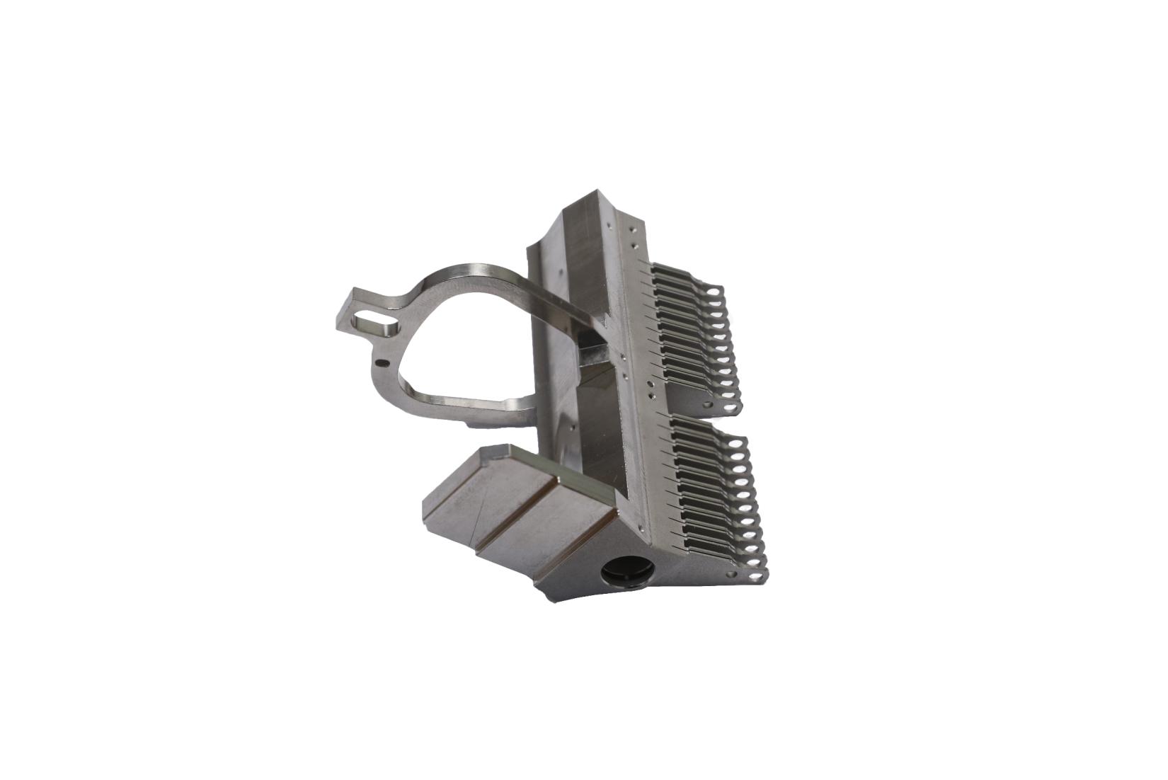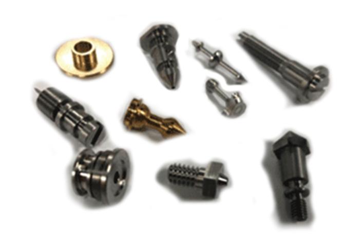 ![]() 產品名:E-驅動架 材料:鈦合金 主要工藝:CNC、平磨、慢走絲 技術難點: --多層薄片架變形控制難度大,平面度0.01mm; -- 各層薄片架位置精度±0.015mm; | ![]() 產品名: 銷釘/閥芯螺絲類小零件 材 料:不銹鋼、鋁/銅合金 主要工藝:自動車床 技術難點: --多軸自動車床批量加工,精度0.005mm | 產品名:沖壓模-沖頭 材料:CD650鎢鋼 主要工藝:平磨、慢走絲、拋光 技術難點: --尺寸及形位公差精度0.003mm; --沖頭成型部位拋光Ra0.05 |