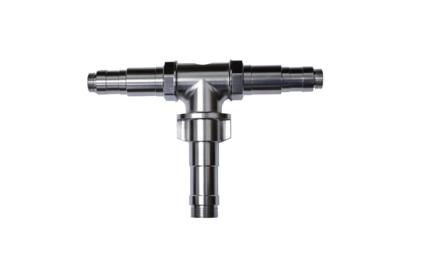 ![]() 產品名:緩沖片沖頭 材料:CD650 & ASP23, Torlon 主要工藝:電火花、磨床、拋光 技術難點: --外形與D型沖孔模輪廓度0.003mm; --內孔與外圓同軸度公差+/-0.0015mm; -- 組合設計,頭部可互換 --外觀嚴格:100倍顯微鏡下檢查D型斜面刀口銳邊不可崩缺。 | ![]() 1.產品名稱:托盤單元 2.材料:AL6061 3.主要工藝:CNC 4.技術難點:凸臺外形尺寸±0.02mm,八個小孔公差+0.01mm,位置度±0.01mm | ![]() 1.產品名稱:三通 2.材料: 7075-T6 3.主要工藝: 車床, CNC 4.技術難點:各外圓全跳動0.01,各端面到軸線距離±0.005mm |